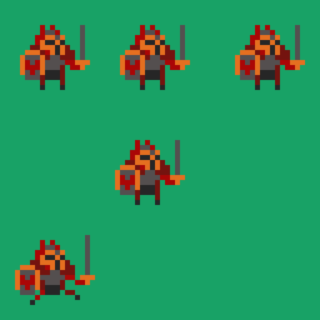 A 16x16 Character with the following animations Walk, Attack, Damaged, death and Idle.